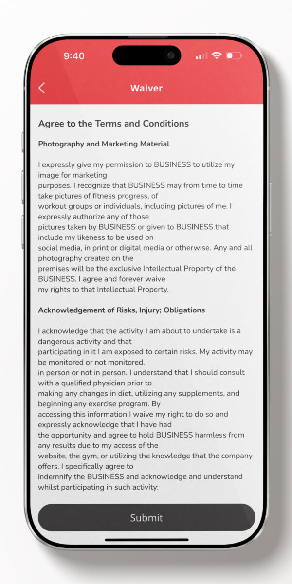 SIGN ANY APPLICABLE WAIVERS DIRECTLY IN THE APP